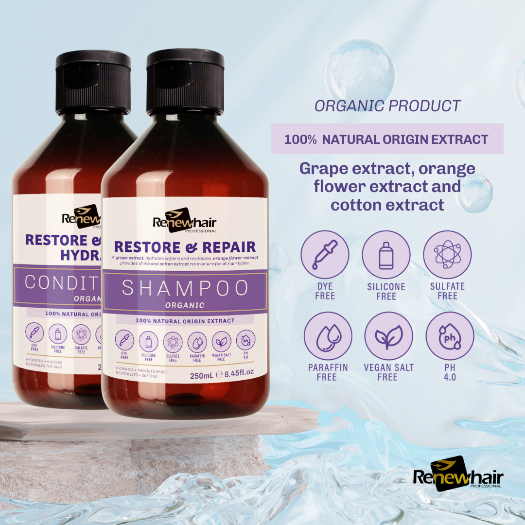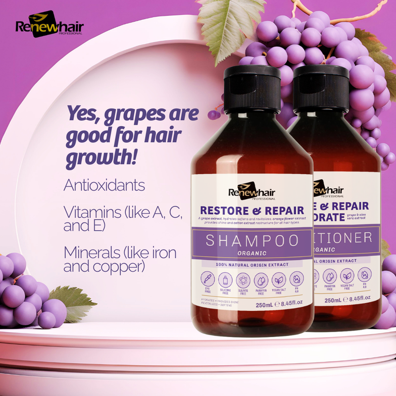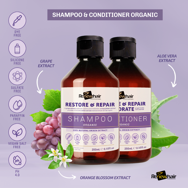 Restore & Repair Hydrate Shampoo and Conditioner Kit (2x250ml) | Organic Grape Extract, Orange Flores & Aloe Vera | Vegan, Salt-Free, Natural Hair Care