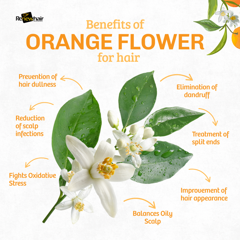 - Deep Hydration: Orange flower water penetrates hair fibers to provide long-lasting moisture, softening texture and improving manageability. Enhanced Shine: By hydrating and nourishing hair, it restores natural shine, leaving hair lustrous and vibrant. Soothes and Balances the Scalp Calms Irritation: The anti-inflammatory properties of orange blossom are beneficial for soothing an itchy, red, or irritated scalp.